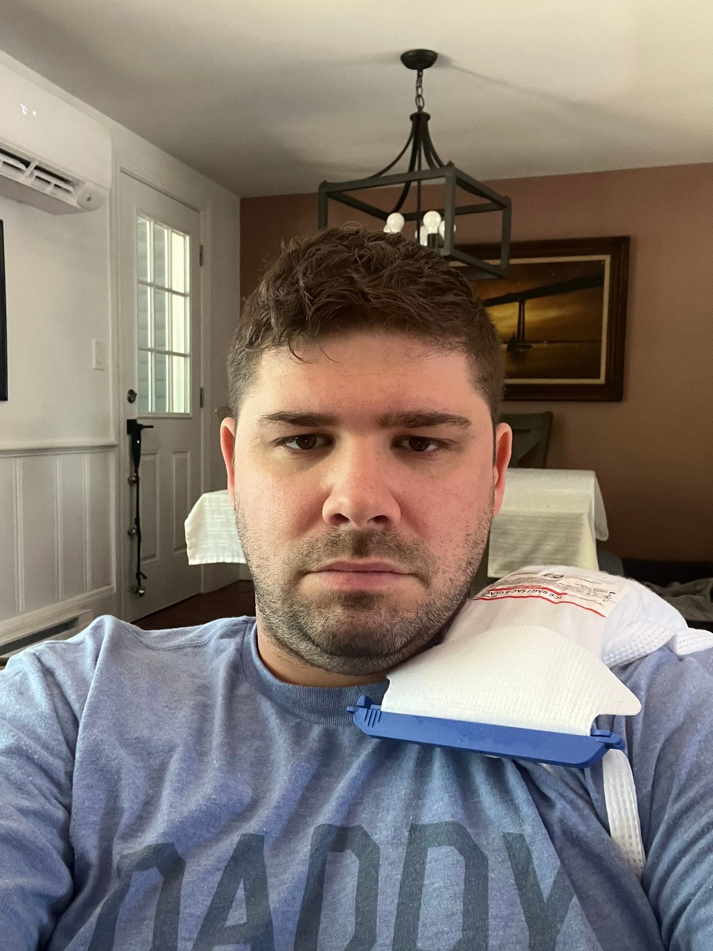 Now, I understand where she’s coming from — I was explicitly told not to do anything strenuous with my left arm, and there surely is a risk of hurting the other side by overcompensating. But after the initial injury, forbidding me to drive, take out the trash, lift groceries with my right arm, or pick up the dog’s poop felt a bit like rubbing my nose in it. Like, how dare I get hurt while she’s this pregnant. This caused some initial bristling as I stewed at how she seemed to be going out of her way to do things that I could do one-handed.